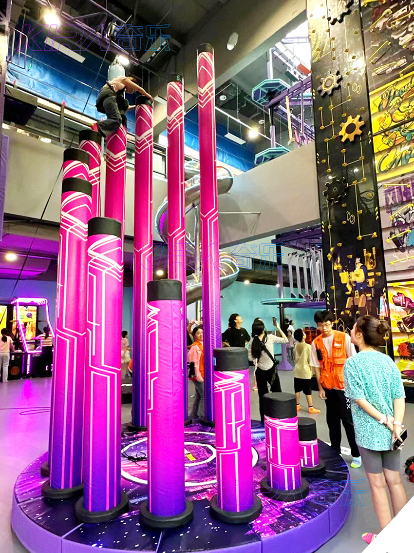 設(shè)計(jì)了高、中、低三層拓展步道,設(shè)置有懸空橋梁、鉆筒等步道關(guān)卡,游玩者需通過爬、鉆、滑、跳、跨等動(dòng)作來進(jìn)行探險(xiǎn),可以鍛煉游玩者的勇氣、毅力和身體的協(xié)調(diào)性。