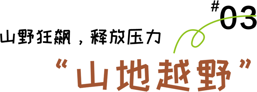 對(duì)于越野愛好者而言,平坦的公路毫無(wú)吸引力。我們開辟了專屬的山地越野路線,50畝山野任你狂飆,沿途是泥濘、碎石和急彎,踩下油門,感受顛簸與馳騁的快感,體驗(yàn)?zāi)I上腺素飆升的“速度與激情”!