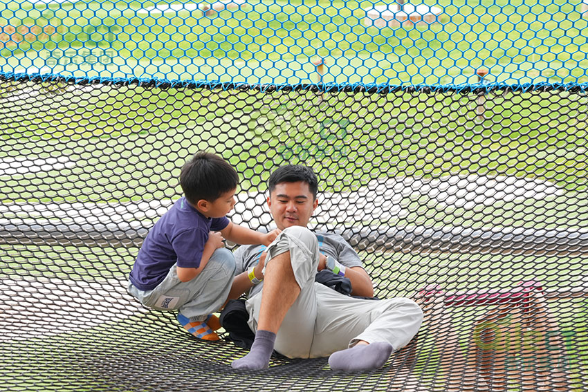 家長在下方笑著守護,