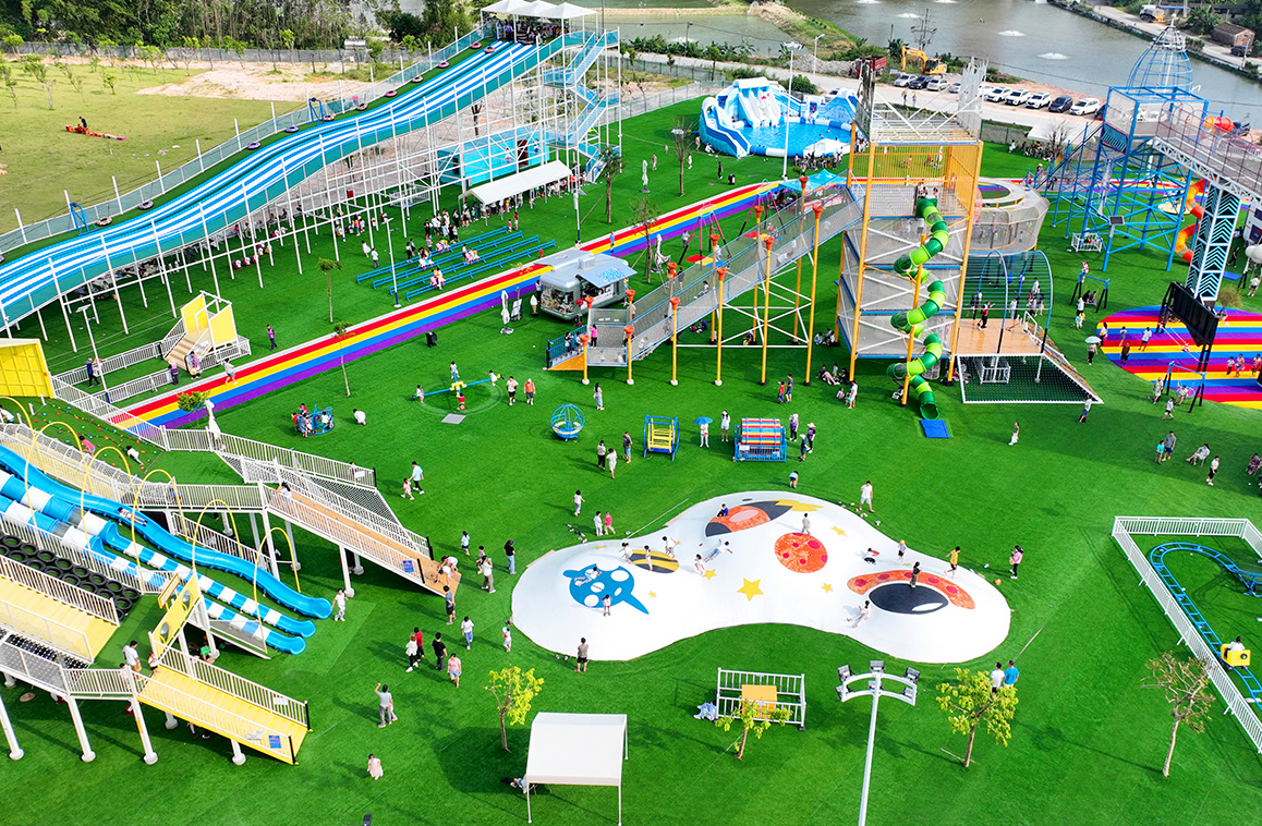 這一升級迅速獲得市場認可。我們與合作伙伴共同打造的案例,從單一的淘氣堡定制,擴展到了蹦床公園廠家承建的蹦床主題樂園、無動力游樂設備打造的戶外親子空間,以及融合IP故事的奇樂星球主題樂園。