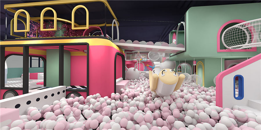 項目主色調以鐵綠色為主,場地空間布局層次分明、造型新穎規劃合理。以茉莉配色為設計理念,支持馬卡龍系列定制。內部游樂項目配置豐富齊全,包括滑滑梯、球池、椰子樹、彈跳迷宮、沙池、小蹦床等項目,造型設計活潑可愛充滿卡通風格,外觀色彩五彩繽紛能夠令孩子產生親切感,項目娛樂性互動性較強,清新而又舒適的游玩環境,能夠使孩子在玩樂中喚醒對美的渴望。